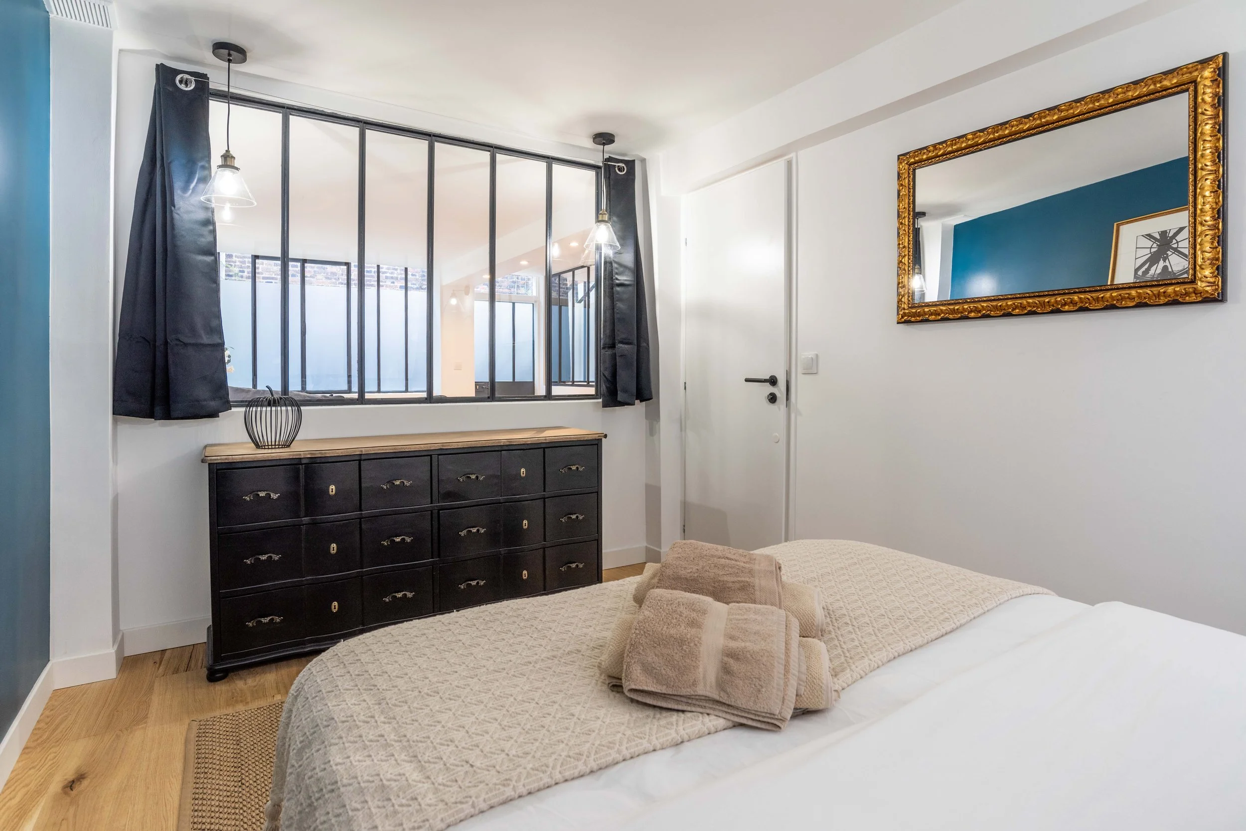 Rénovation intégrale d’un atelier situé dans un bâtiment classé du patrimoine historique parisien. Le projet préserve l’authenticité des lieux et des matériaux d’origine tout en optimisant l’espace. Création d’un appartement 3 pièces lumineux, avec des verrières intérieures permettant une diffusion naturelle de la lumière. Aménagement de deux chambres, d’une cuisine fonctionnelle et d’une salle d’eau optimisée.